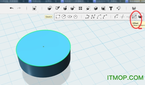 3、使用草绘指令集中的offset偏移指令对第二步投影处的面的边缘进行偏移(1MM)