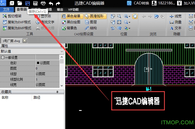 8、返回编辑器的操作界面就可以查看刚刚添加的文字已经添加成功,在点 击软件顶部的“保存(Ctrl+S)”按钮,将编辑好的CAD图纸进行保存。