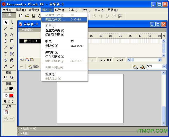 1,打开FLASH软件:点插入,新建元件
