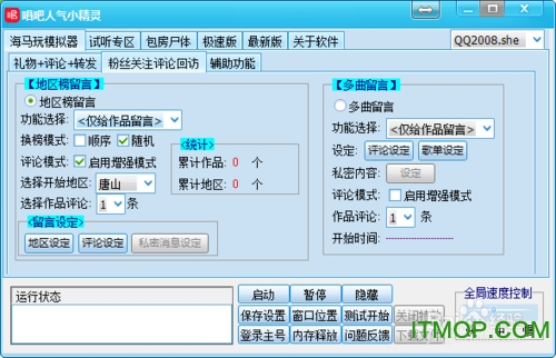 唱吧人气小精灵软件是一款人气很高的唱吧辅助软件,专为唱吧吧主提高人气,涨粉等打造,支持自动关注、自动评论、自动留言、自动转发,自动送花等强大的功能,是款唱吧必不可少的涨粉神器,喜欢的朋友欢迎来IT猫扑网下载体验吧!
