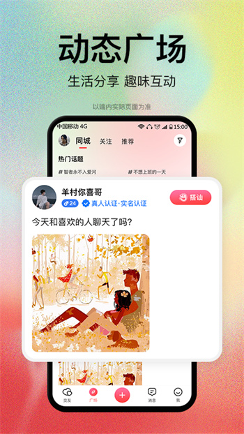 2.同城推荐功能,帮助用户去真正意义上找到陌生人交流聊天,这样会让用户的社交过程变得更轻松。