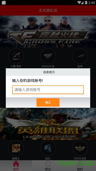 天天领礼包无限积分版是国内最好用的游戏论坛,丰富的免费福利赠送游戏玩家,是游戏爱好者打游戏的不二之选,用户可以通过此软件免费领取领取cf手游、Lol皮肤、王者荣耀英雄、点券等,热门游戏礼包一网打尽,是您畅玩手游的利器。快来it猫扑下载吧~