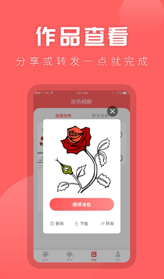 涂色app是一款提供了图案创造功能的软件,让他们使用软件在较短的时间内绘制出来不同的图形,让用户在短时间内忘记烦恼,沉浸在快乐的时光当中,涂色app还设置有大量精美的图片内容,可以按照软件提供的相关模板,创造出只属于自己的相关作品,能邀请其他感兴趣的小伙伴一同尝试,设计出更加精美的图案,不断激发自己的艺术细胞和创造活力。