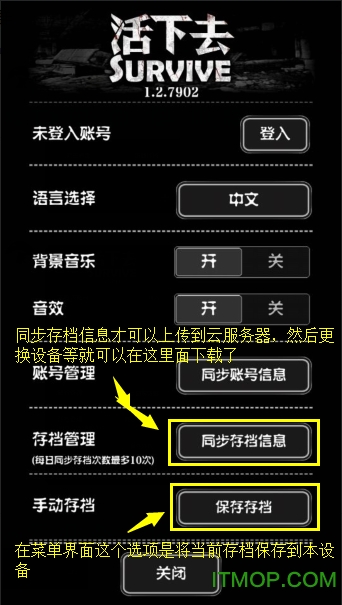 第二种是上传存档,存档上传到云服务器后,大家如果更换设备或者删除游戏后都可以从云端再下载自己的存档。在菜单界面,选择如上图的同步存档信息,然后点下云标志就可以上传了。