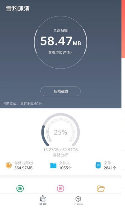 雪豹速清app,目前评分很高的一款安卓垃圾清理工具,特色功能自动扫全盘,扫描速度超快,智能文件分类,一建清理垃圾,支持安卓11/Android/data目录访问、文件复制、缓存垃圾扫描、文件管理等操作。