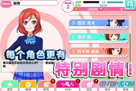 lovelive盛大版是热门TV动画《lovelive!》的智能手机游戏。游戏联网后可以和全国的玩家一较高下,还有卡片系统.