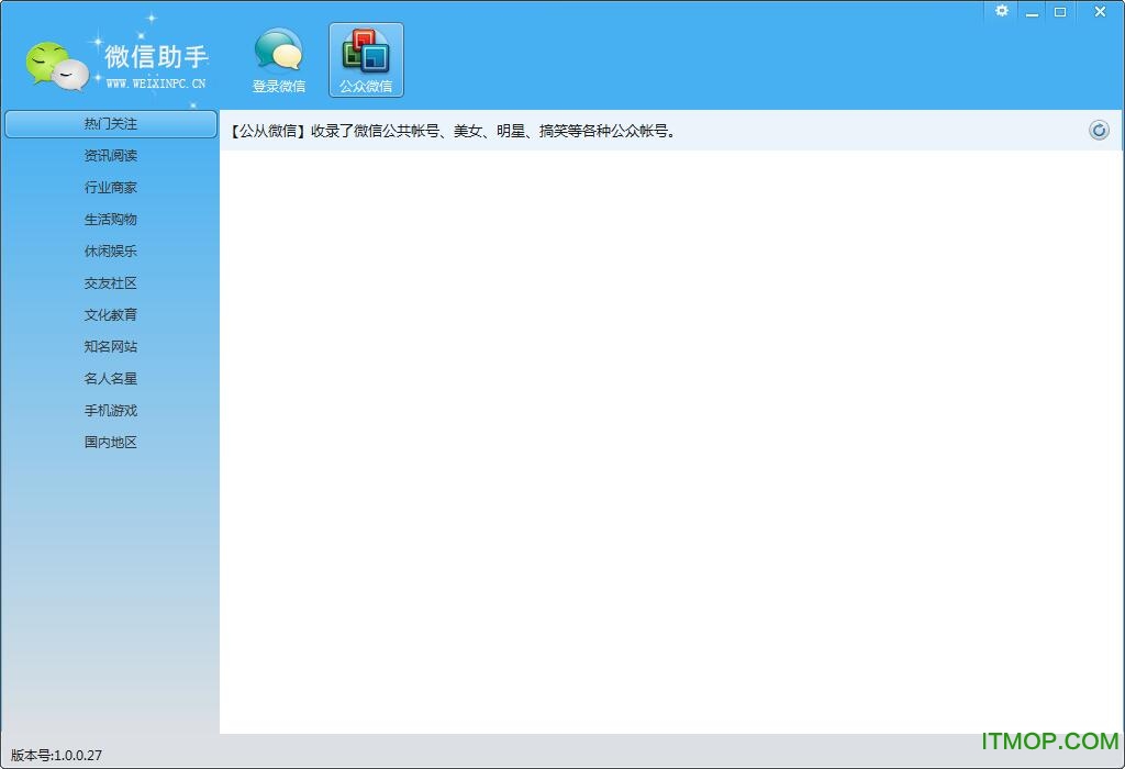 微信助手是电脑客户端版的微信,方便快捷使用,并收录了微信公共账号,微信美女账号,微信明星帐号,微信搞笑账号等各种类型的微信公众账号以及微信、微信网页版的使用方法。有需要的用户欢迎来IT猫扑下载使用~