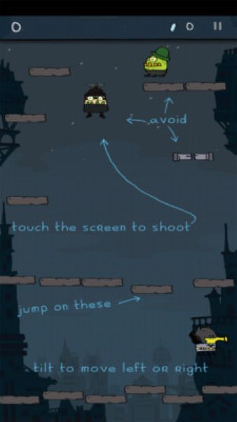 游戏中玩家控制涂鸦小怪物不断向上跳跃即可,最后以分数看实力。
