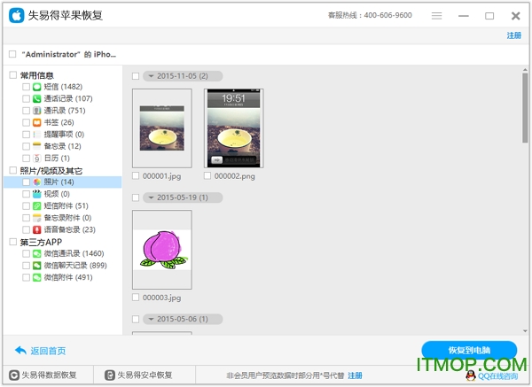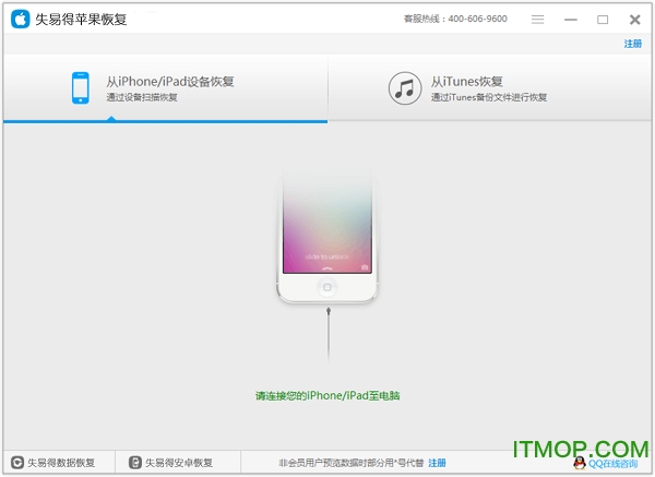 失易得苹果恢复软件是一款功能强大的安卓手机数据恢复软件,将苹果手机连接电脑后,通过该软件就能对通讯录、相册、视频以及通话记录、短信等误删文件进行恢复,速度快,支持多品牌手机,兼容性强,有需要的朋友快来IT猫扑网下载吧!