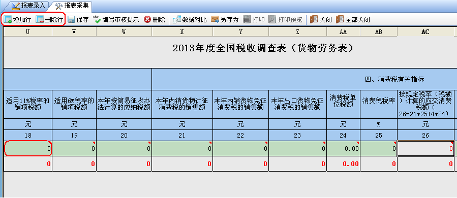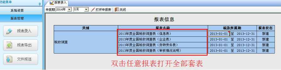 数据行固定格式的报表,包括税收调查信息表、税收调查企业表