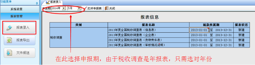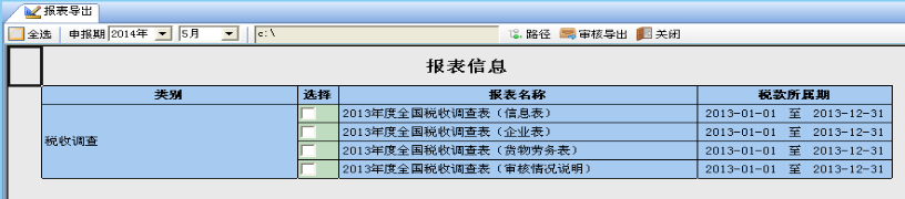 报表采集完毕,可进入报表导出功能,导出申报文件,进行申报