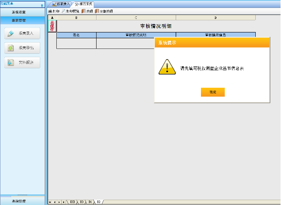 税收调查套表需要先填写并保存信息表,其他报表才可保存,否则只能看到关闭按钮