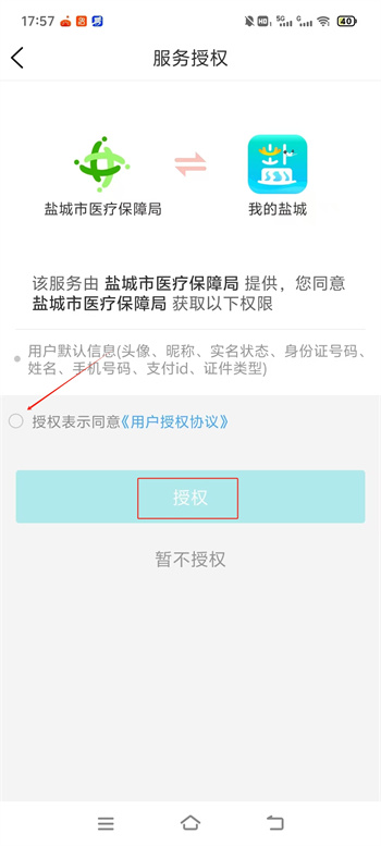 4、然后直接授权医保查看的权限,点击圆点同意当前的协议,继续点击【授权】即可获取到往前历历在目咋缴费记录了。