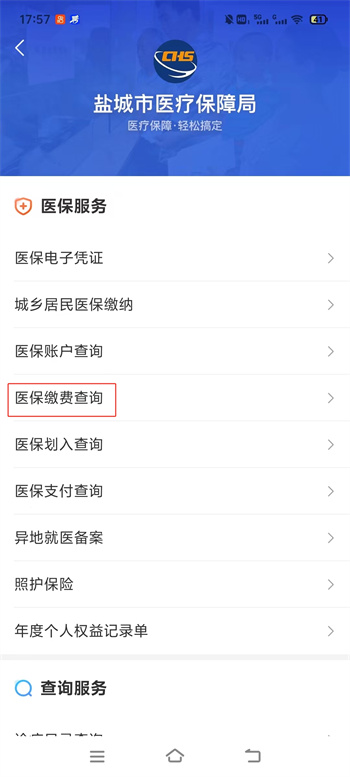 2、随后在这个医保服务的页面之间,点击下列的【医保缴费查询】,将所有以前缴纳过的医保都记录在内,轻松完成医保的查询;