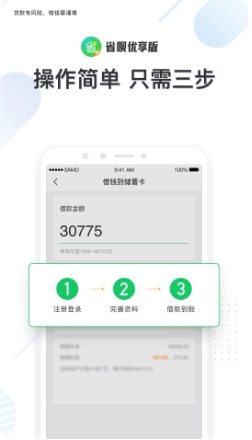 省呗优享版是一款可以解决资金周转的软件,用户在用款时,可通过提交身份信息来进行申请,满足用户小额资金的周转问题,也让用户得到正规的借款服务,不同的人群有着不同的可用额度,只要递交信息就能查询额度范围,到账的速度特别快,而且不限制使用的范围,线上签约的方式进行获得,而且还能选择不同的还款周期,避免出现还款压力,同时又能让用户灵活的进行周转。