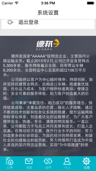 德邦物流是国家“AAAAA”级物流企业,主营国内公路运输业务,创始于1996年。截止2014年9月,公司已开设直营网点 5,100多家,服务网络遍及全国,自有营运车辆8,800余台,全国转运中心总面积超过105万平方米。
