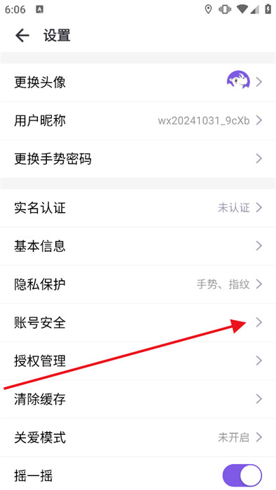 3、接着,在这个页面找到【账号安全】板块,并点击继续跳转页面;