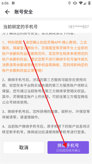 5、最后,进入详情页,了解了所有解绑事项之后,可点击右下角按钮【解绑手机号】。