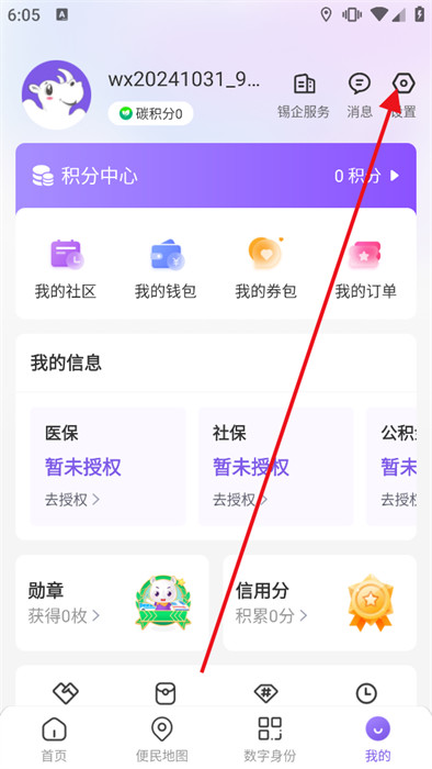 2、随后,进入首页切换到【我的】,并找到右上角【设置】按钮,如下图所示;