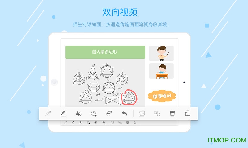 8橙云课app是米猪教育旗下推出的一款网络云课堂手机应用软件,为老师和学生打造一个网络课堂平台,打破传统教师教学的局限性,随时随地就能教学上课,支持师生互动、课件上传、超级白板等功能。有需要的朋友快来IT猫扑网下载吧!
