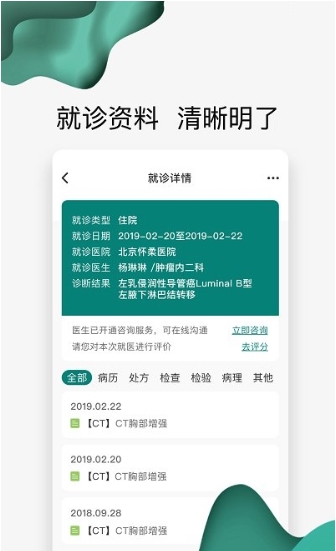 北京怀医健康云官方版是一款医疗服务软件,用户可以查询自己的病例,同时也可以查询在医院的所有消费情况。可以清清楚楚的知道目前的病情和目前的治疗方案等等。