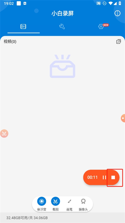 5、录制的过程中不仅可以截图,还可以实现画笔在屏幕上方进行绘画,录制完毕后直接单击方块处进行保存;