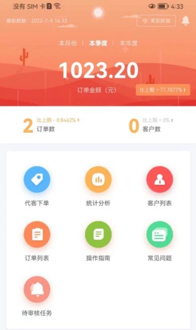 3.用户可通过该软件查看到一定期限内的收益额以及订单数量,客户的相关信息也会清楚呈现在该软件界面,方便下一次沟通合作。