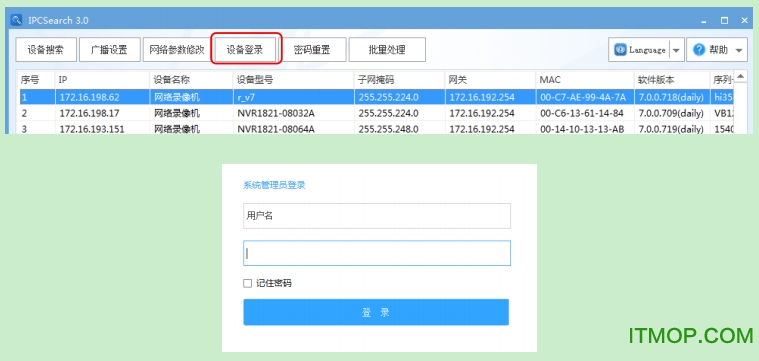 1) 选中需要登录的设备,双击戒单击“设备登录”,戒使用鼠标右键菜单,弹出 web 登录界面。