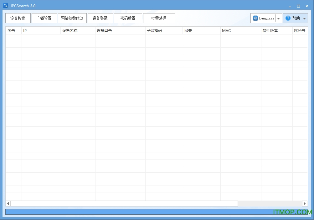 IPCSearch3.0是为嵌入式网络监控设备开发的软件应用程序。IPCSearch 是一个搜索工具,针对大量丌同型号的监控点设备,用亍搜索可通信范围内台、编解码器等设备,并对监控点设备进行登录、重启、修改网络参数、密码重置等适用于监控平台、NVR、IP Camera及编解码器的搜索、网络参数修改、设备登陆等功能。