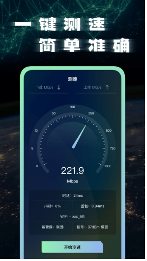 操作方式简单方便,点击一键测速之后,快速查看当前的网络数据,无需任何复杂的操作。