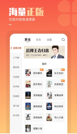 平台中的小说种类有特别多,分别有:武侠类,爱情类,言情类,魔幻类,恐怖类,惊恐类,玄幻类等等,每个类型的小说都有成千上百种,可以让用户尽情的去遨游在小说的海燕世界中,丰富日常生活。