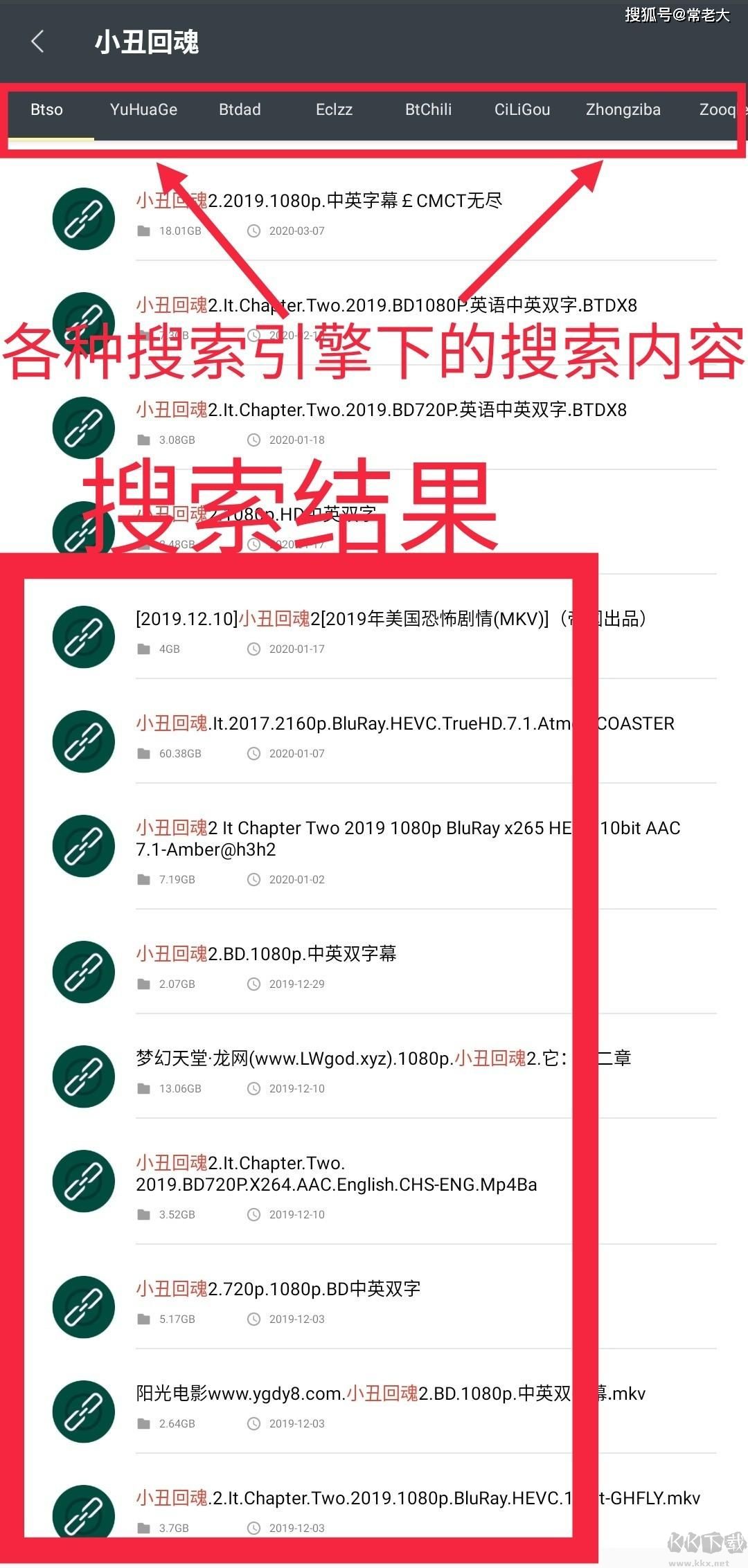 现在就让我们来搜一搜某个电影,比如小丑回魂(推荐大家看这个电影,挺恐怖,也挺悬疑),搜索结果如图所示。