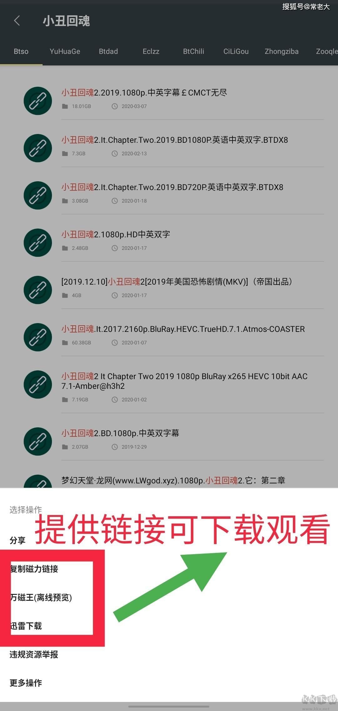 可以看到,有复制链接、万磁王、迅雷下载等三种方式来下载,在这里就给大家推荐几款下载器,比如IDM+、火箭BT下载器等第三方软件。