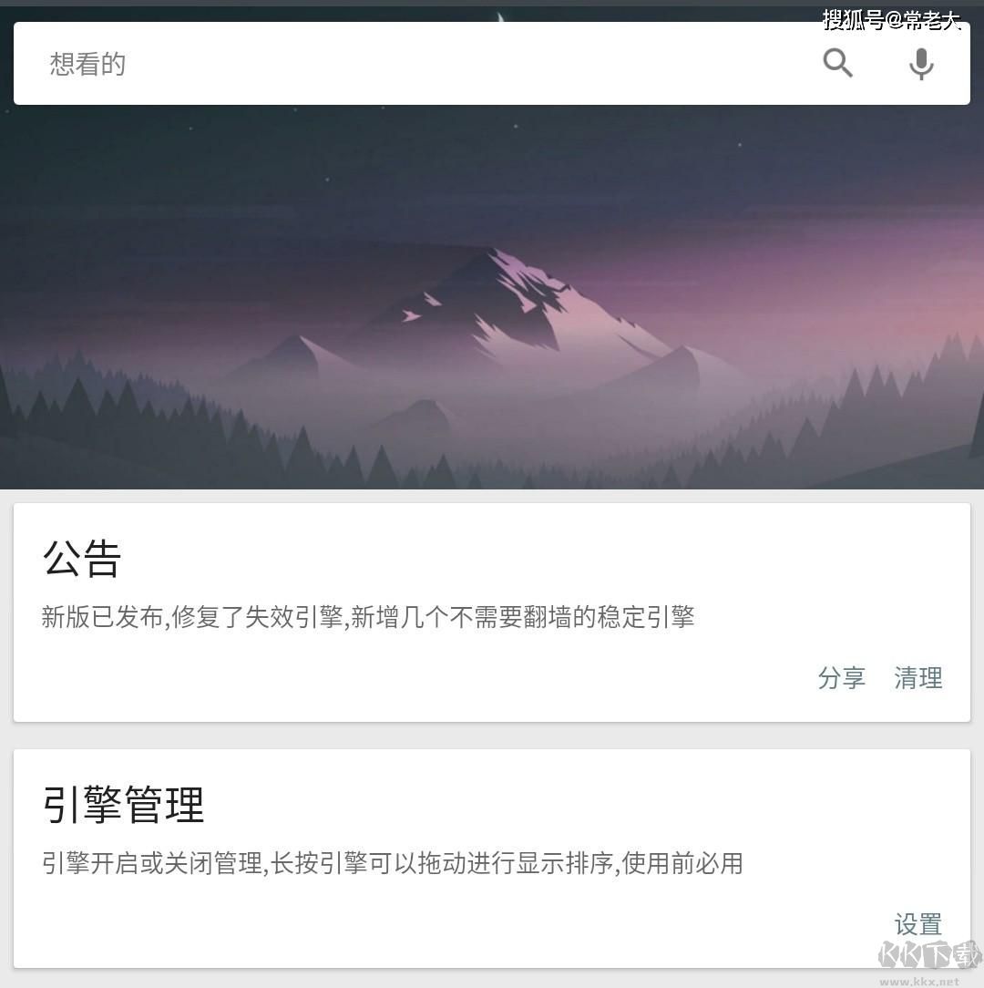 2、界面简洁,没有广告,界面上几乎只有一个搜索框和引擎管理设置,除此之外,没有任何乱七八糟的功能!一向追求简洁的我,让我爱不释手。
