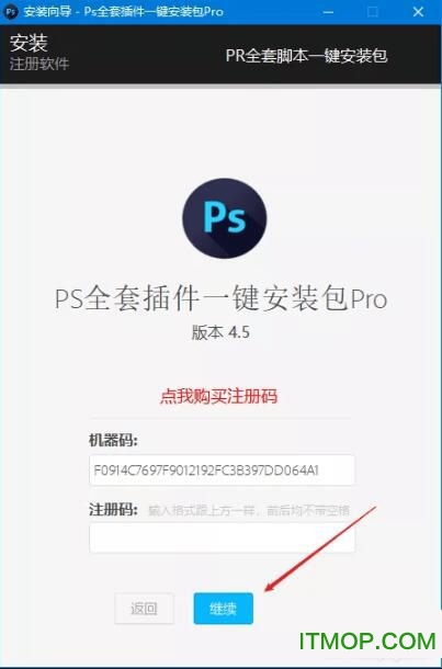 4、无需填写注册码,直接点击“继续”,耐心等待安装完毕