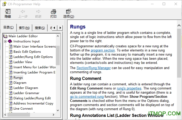 在CX-Programmer 中按F1健,将显示帮助窗口,如下图