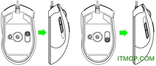 1. 按住Razer Imperator帝王蟒底部的侧按键调整开关 。