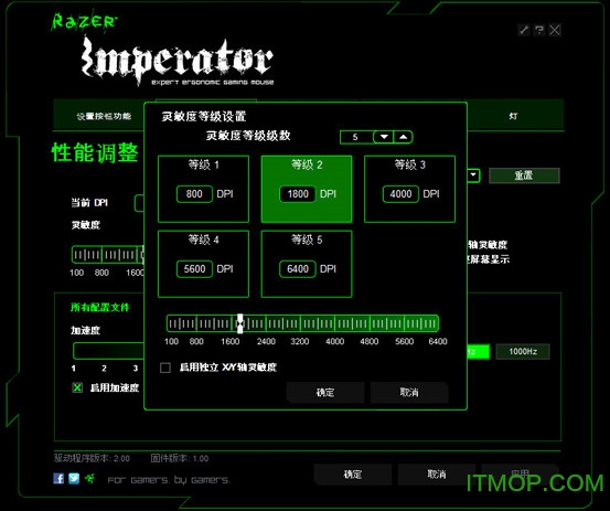 灵敏度等级是可实时切换的预设灵敏度值。这意味着您只需在灵敏度等级之间进行切换,即可迅速转换到首选灵敏度。