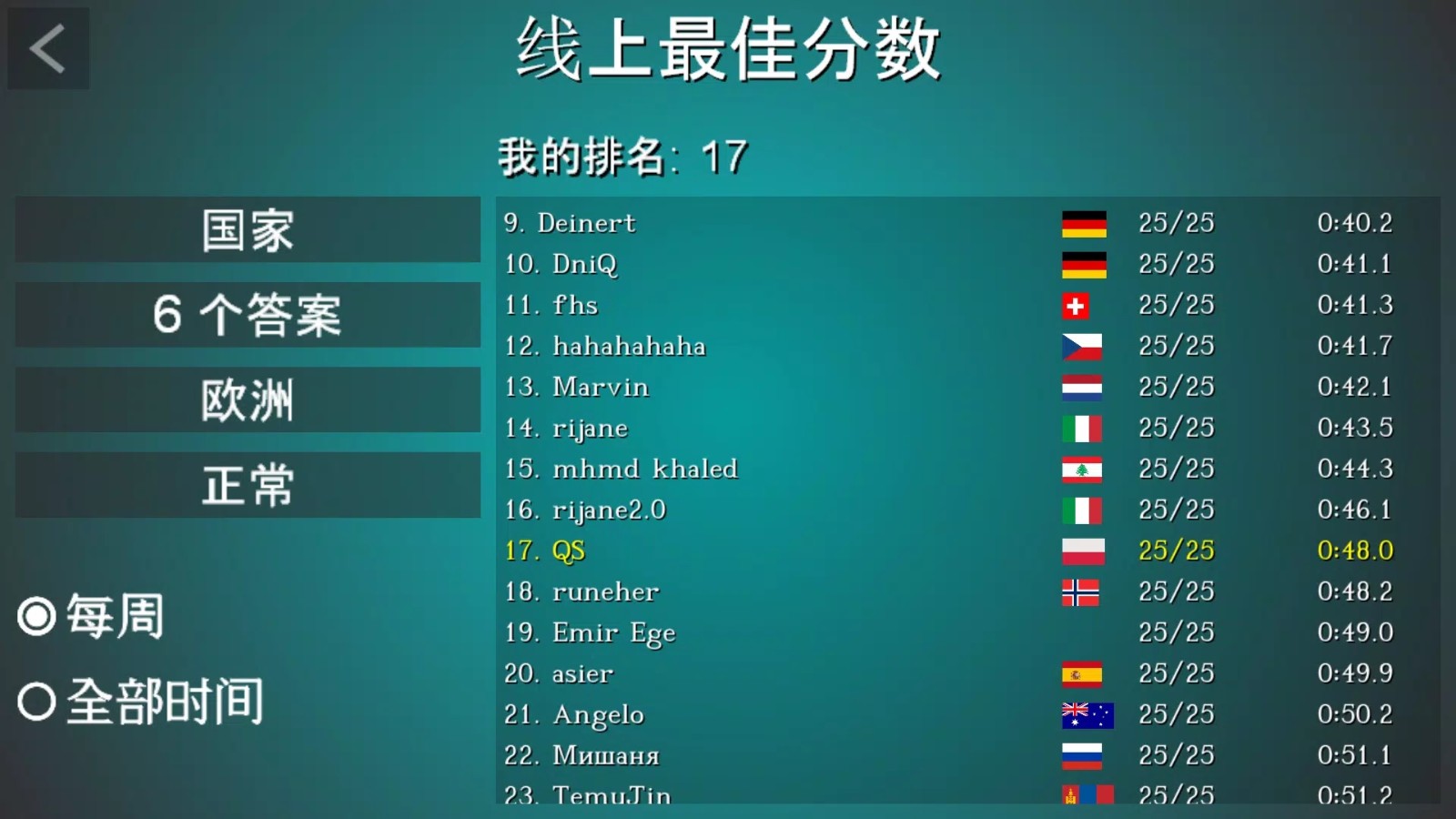 1.每个关卡都会呈现出不同的国家区域,要根据给出的区域方向和选项来回答出正确的答案。