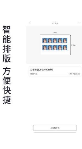 1, 证件照免费制作,一键智能更换背景,用手机拍摄出来人像图片,导入软件,设置需要的格式大小尺寸点击输出,即可完成一张完美的证件照,照相馆里直接打印出来使用,家里有打印机的,也可以自己直接打印出来,媲美专业相馆的相片。