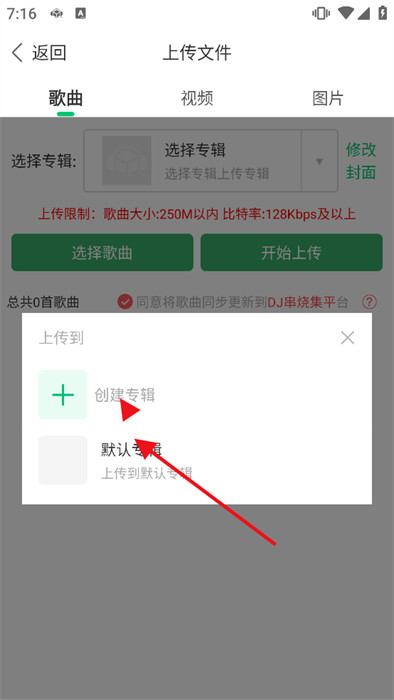 4、接着,你可以创建一个新的文件夹或者上传到默认专辑当中,点击继续;