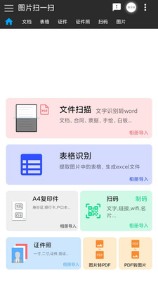 1、支持文件扫描,表格识别,扫码,证件照扫描等