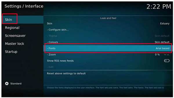 3、在Skin选项中选择Fonts—Arial baesd。
