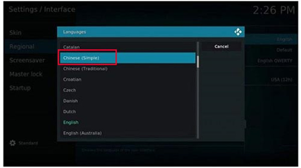 kodi播放器设置中文的方法
