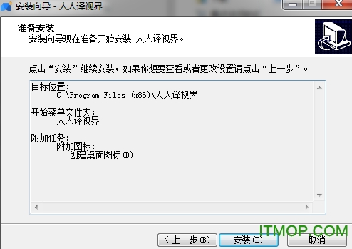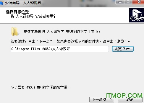 选择目标位置,默认位置"C:\Program Files (x86)\人人译视界",建议安装D盘,点击下一步;