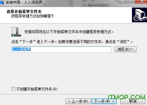 选择开始菜单文件夹,默认文件夹"人人译视界",点击下一步;