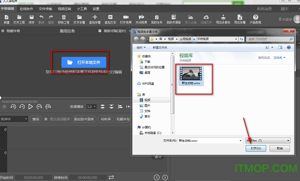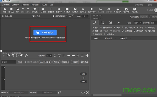 进入软件的字幕编辑界面,支持对本地文件进行打开;