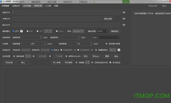 2.视频压制界面包括了视频文件的选择、字幕文件的选择、输入文件的选择等;