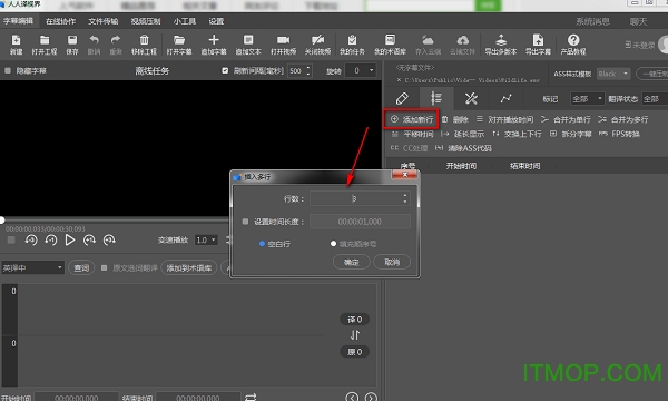 支持对新行进行添加,包括了行数、设置时间长读、空白行等,点击确定;