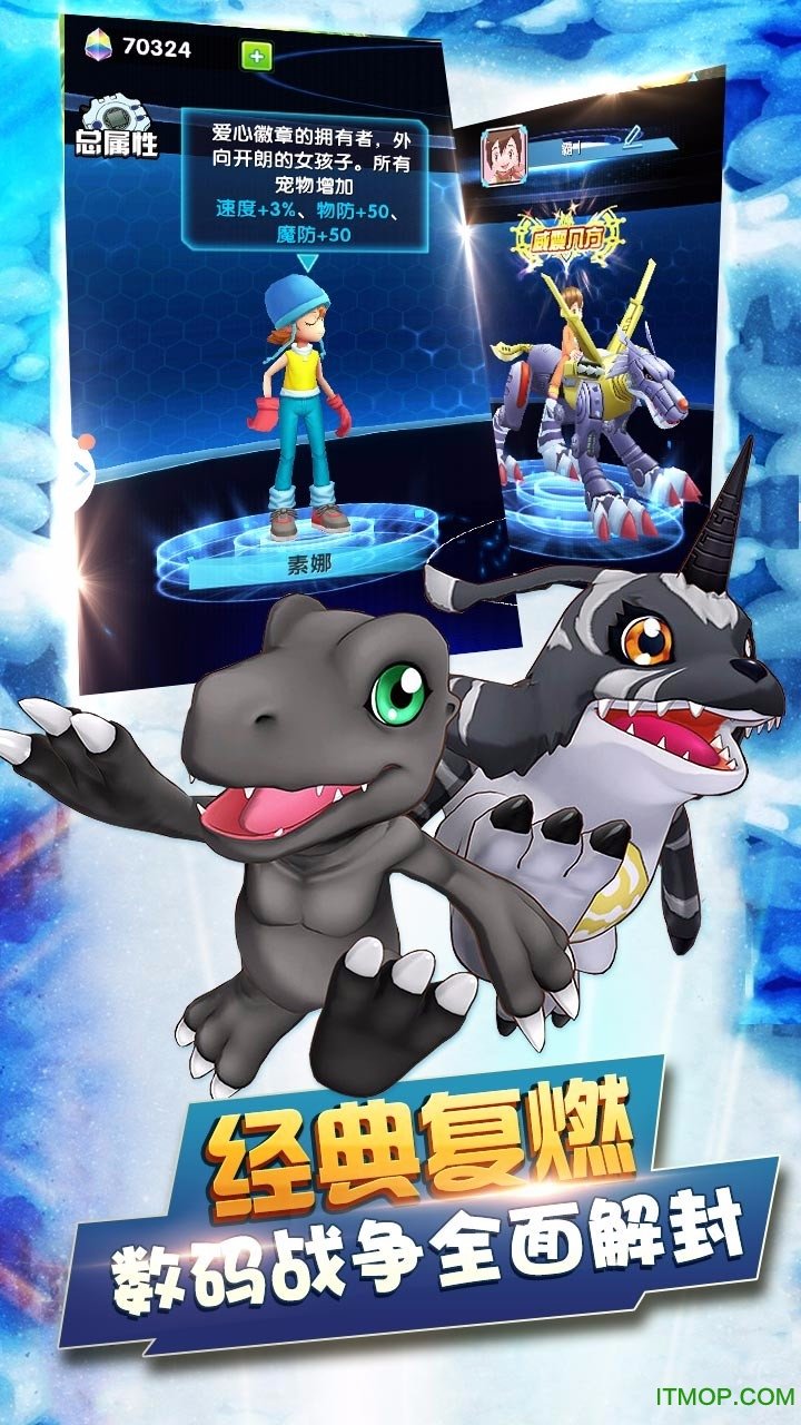 经典复燃,让数码梦想变成真实!《掌机宝贝》唤醒你的数码童年。百种熟悉的数码兽再掀羁绊情怀, 自由选择你的专属数码兽!原著大招完美再现,震撼特效点燃战斗热血!3D动态场景,真实还原数码世界!满满 的童年回忆,满满的感动情怀,快接受命运的选召,体验最真实的数码冒险!
